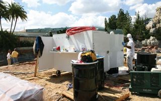 The existing coating, which was original to the ride and had been in place since 1959, contained high concentrations of metal and glass. It also was impregnated with 30+ years of diesel fuel residue from the subs themselves.