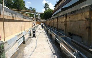Dancey explains, “The dry boxes house elaborate computer animation that absolutely cannot get wet. And they are totally submerged. When they started leaking, the park maintained that the waterproofing wasn’t working. But the cracks in the floor were occurring in part of the ride that they had eliminated from the scope of work. We went back in and waterproofed the cracks by injecting SealBoss polyurethane water stop foam grout.”