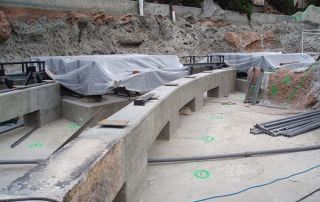 In order to address those leaks, the original specs called for the walls and floor to be waterproofed with a system consisting of geotextile fabric and 150 mils dry film thickness (DFT) of polyurea on top of caulk.